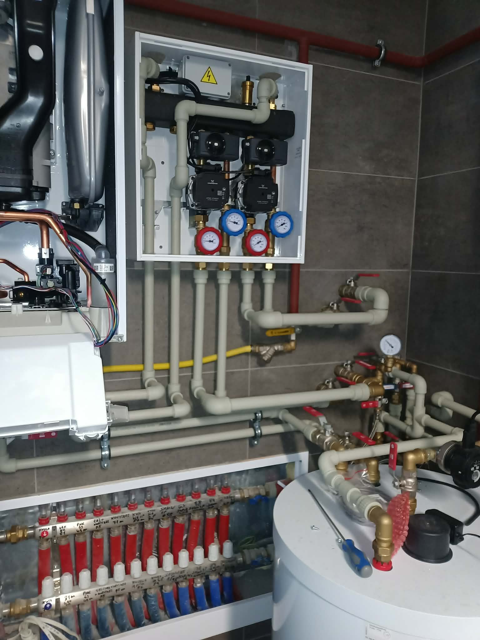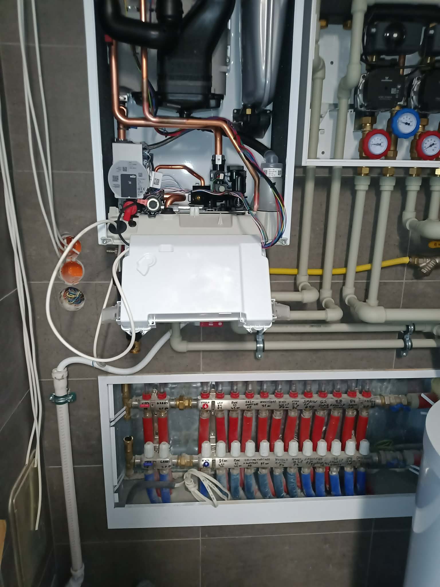 Wykonaliśmy kompleksowy montaż kotła gazowego marki Saunier Duval wraz z instalacją hydrauliczną w nowo wykończonej kotłowni. Zakres prac obejmował podłączenie kotła do instalacji centralnego ogrzewania oraz przygotowanie systemu pod ogrzewanie podłogowe z dwoma niezależnymi obiegami.