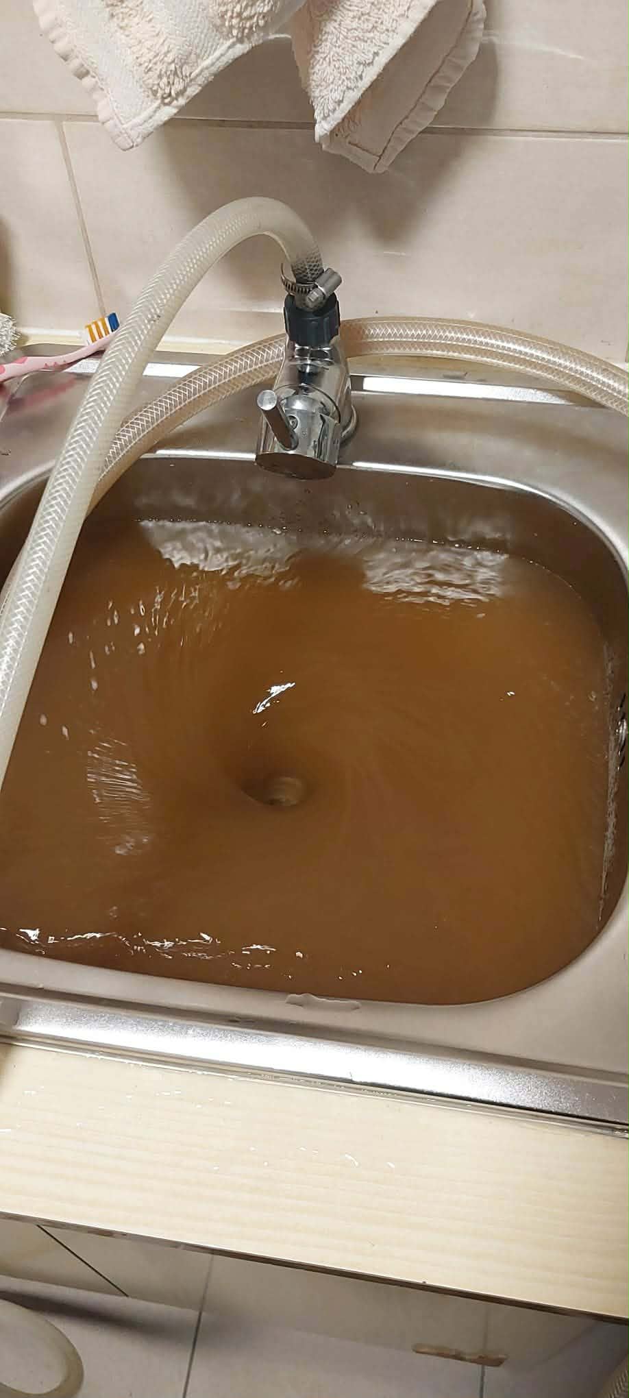 Widoczna na zdjęciach brunatna woda to efekt wieloletniego odkładania się osadów w instalacji.